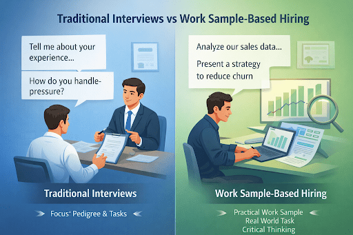 Traditional interviews often reward confidence and articulation—not competence.
