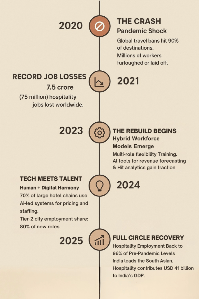 Now, as travel, dining, and tourism make a robust comeback, the focus has shifted from survival to rebuilding. The challenge is not just about rehiring, it’s about restructuring teams, adapting to new guest expectations, and creating workplaces that attract and retain talent in a post-pandemic world.