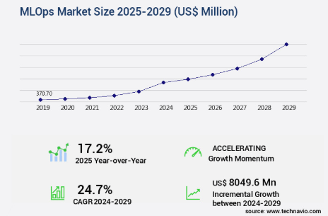 The global MLOps market size was valued at USD 1.58 billion in 2024. The market is projected to grow from USD 2.33 billion in 2025 to USD 19.55 billion by 2032, exhibiting a CAGR of 35.5% during the forecast period. North America dominated the global MLOps market with a share of 36.21% in 2022. (Source )